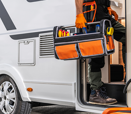 In unserer Meisterwerkstatt in Petersberg bei Fulda bieten wir Ihnen alle gängigen Werkstattleistungen, angefangen vom Klima-Service, über Dichtigkeits- und Gasprüfungen bis hin zu Schreinerarbeiten an Ihrem Wohnmobil oder Wohnwagen.